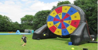 A fun target game where players kick balls that stick to the inflatable dartboard — perfect for events and kids’ areas.